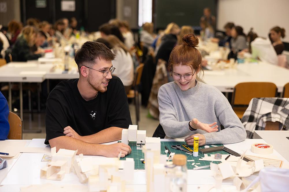 Im Studium erwirbst du konzeptionelle, gestalterische und digitale Kompetenzen für analoge und virtuelle Räume. Du arbeitest interdisziplinär an konkreten Fragestellungen, häufig in Kooperation mit Unternehmen oder kulturellen Einrichtungen, und kannst dein Wissen direkt praktisch anwenden.