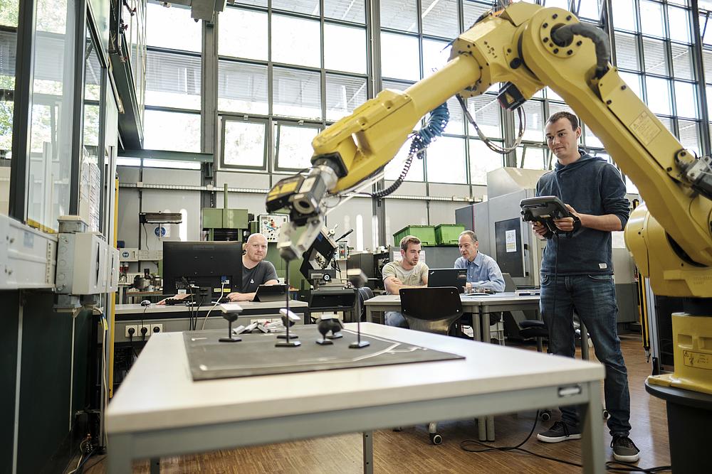- Produktion: Moderne Fertigungstechnologien, Automatisierung, eine leistungsfähige Logistik und konsequent geplante Fabriken bilden die Grundlage einer effizienten Wertschöpfung. Sie erlernen virtuelle Produktentwicklung bis hin zur Gestaltung und Logistikplanung einer modernen Fabrik mit Robotik und Methoden und Anlagen der Industrie 4.0