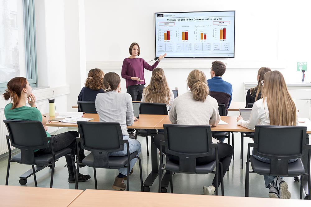 Neben Forschungsmethoden und Lehrangeboten wie Clinical Leadership oder Digital Health stehen fachspezifische physiotherapeutische Projekte im Mittelpunkt des Studiengangs. Vorbereitet durch Lehrinhalte zu Projektmanagement und -auswertung wählen Sie ein physiotherapiespezifisches Forschungsprojekt nach Ihren individuellen Interessen und führen dieses autonom durch. Dabei stehen Ihnen Expertinnen und Experten sowohl aus der Physiotherapie als auch aus weiteren Fachdisziplinen der Fakultät Sozial- und Gesundheitswissenschaften zur Seite.