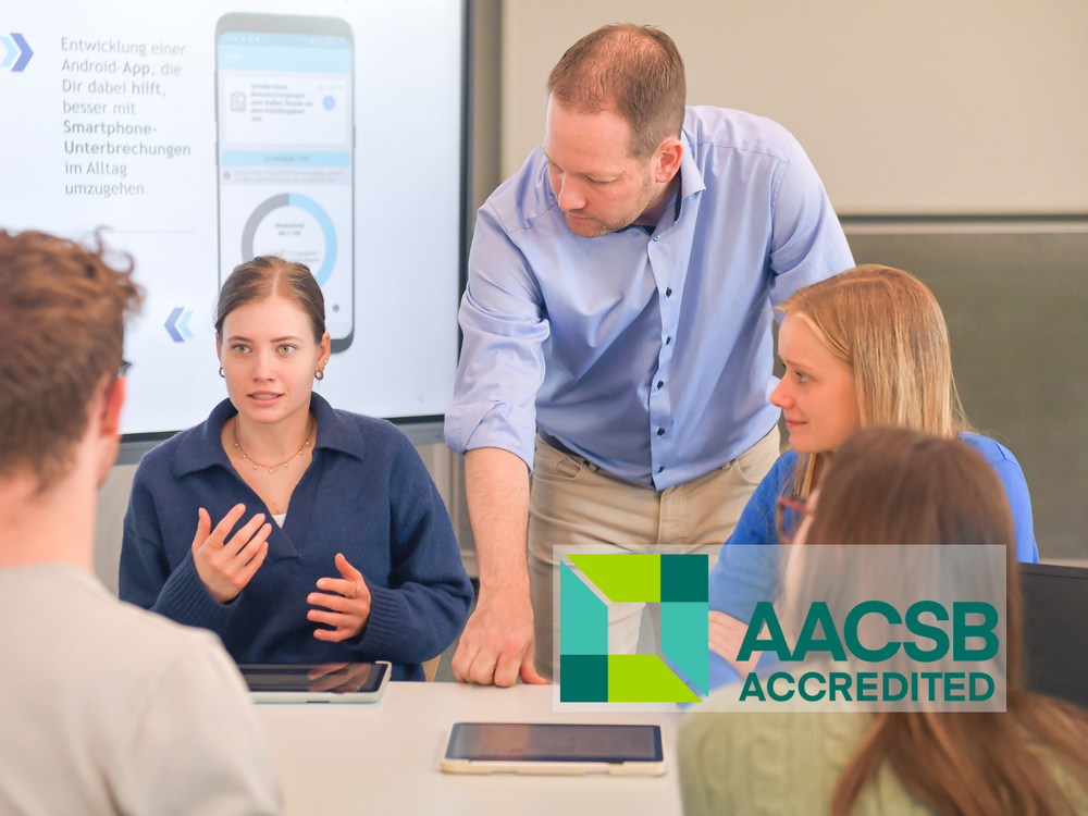 Was das für Dich bedeutet? Die AACSB-Akkreditierung bestätigt die hohe Qualität unserer Lehre, Praxisnähe, internationalen Ausrichtung und beste Aussichten auf einen erfolgreichen Berufseinstieg, egal ob hier oder weltweit.